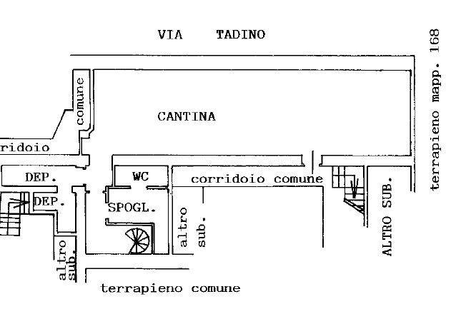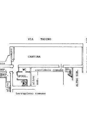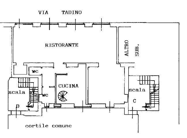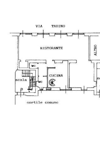Nel dettaglio l'unità immobiliare si compone al piano terra di un'ampia sala ristorante con bancone per la somministrazione di alimenti, di un retro negozio/cucina, oltre a servizi igieni per i clienti. E' inoltre dotata di uno spazio esterno coperto “dehor” direttamente su via Tadino. Percorrendo la scala a chiocciola realizzata nel locale cucina, si accede al piano sotterrano dove è presente un'ampia cantina attualmente usata a dispensa (dotata di celle frigo) e vani ad uso deposito, oltre spogliatoio e servizio igienico a servizio dei lavoratori.