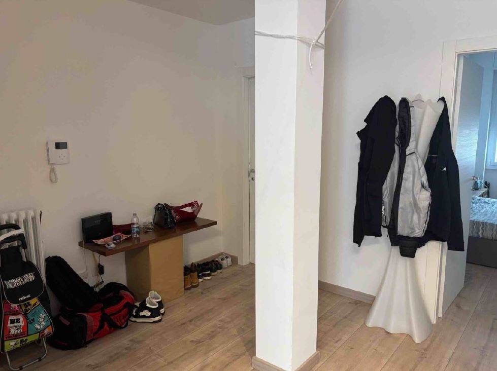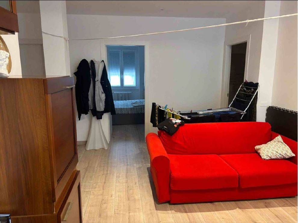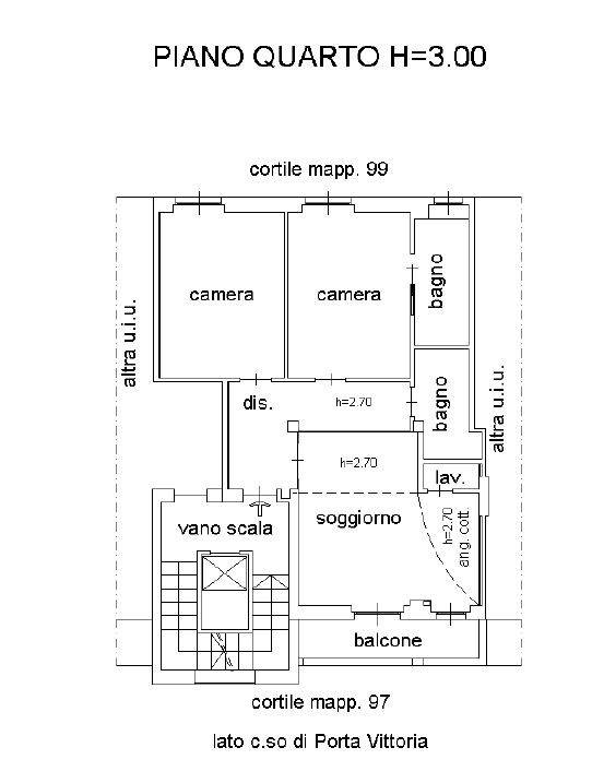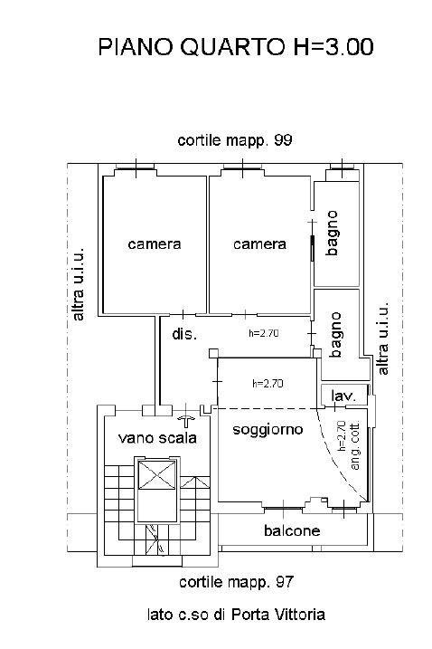 L'unità residenziale si compone di ingresso/disimpegno, soggiorno con cucina a vista e balcone con affascio sul Corso di Porta Vittoria, ripostiglio ad uso lavanderia, due camere matrimoniali, un bagno finestrato ed un bagno cieco.