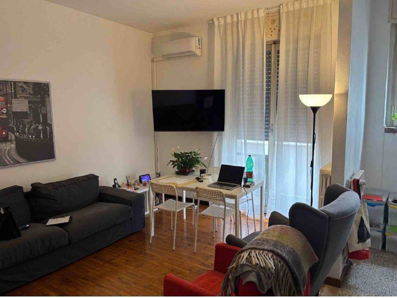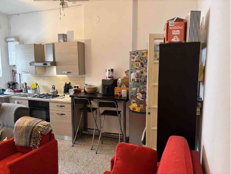L'unità residenziale si compone di ingresso/disimpegno, soggiorno con cucina semi-abitabile e balcone con affaccio sul cortile interno, due camere matrimoniali, un bagno finestrato.